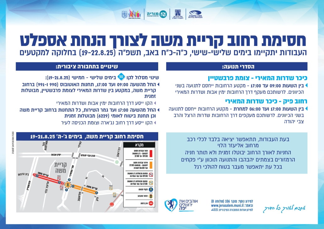 חסימת רחוב קריית משה לצורך הנחת אספלט