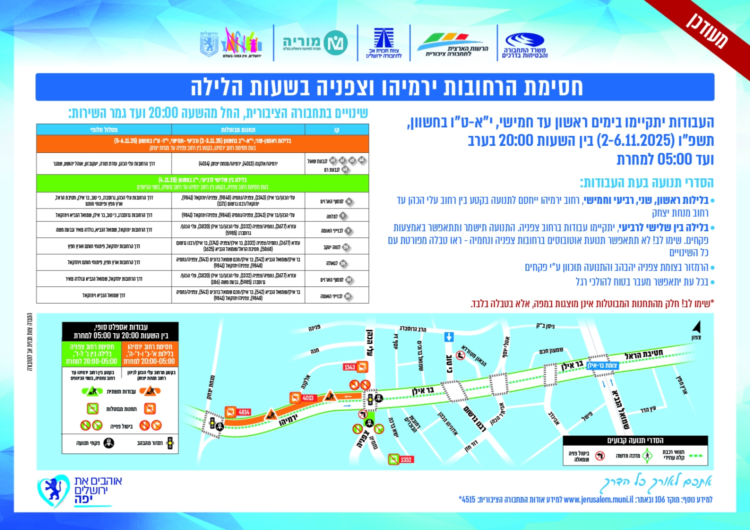 שינויים בתחבורה הציבורית בשל עבודות לשדרוג רחוב שאולזון...